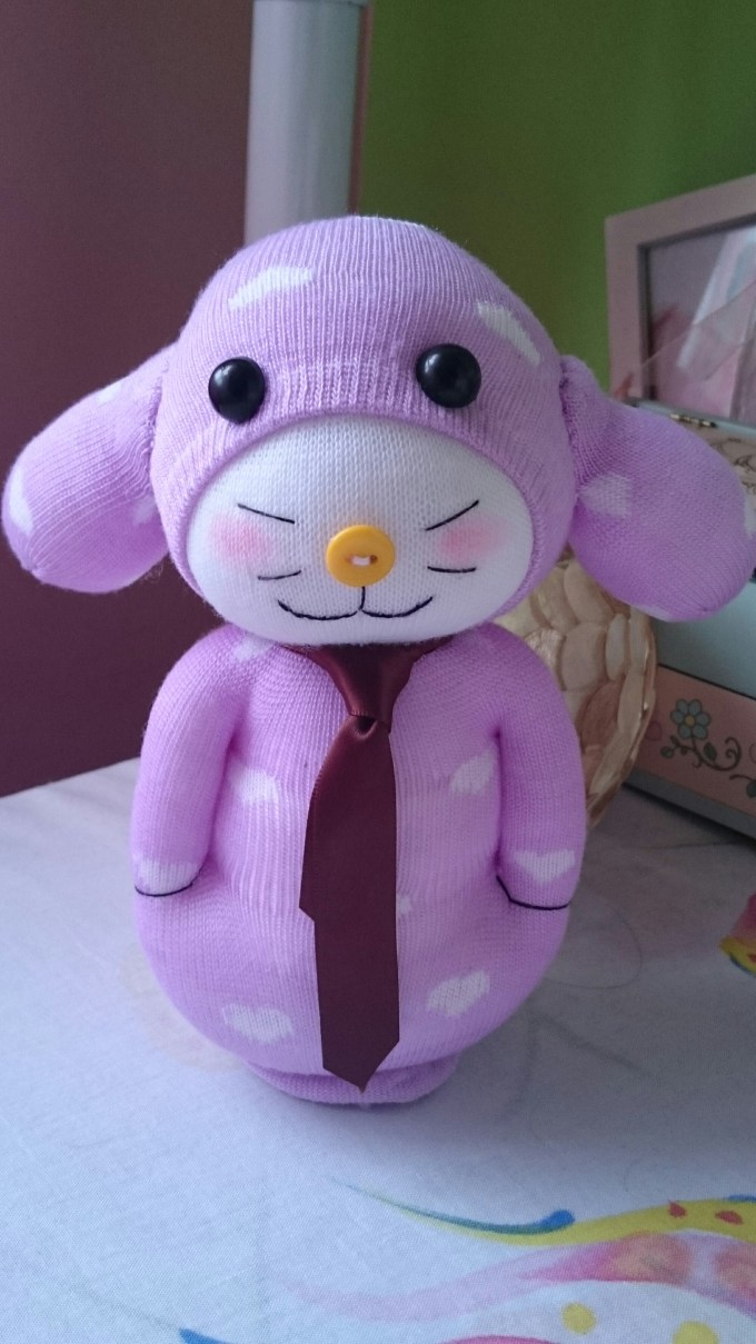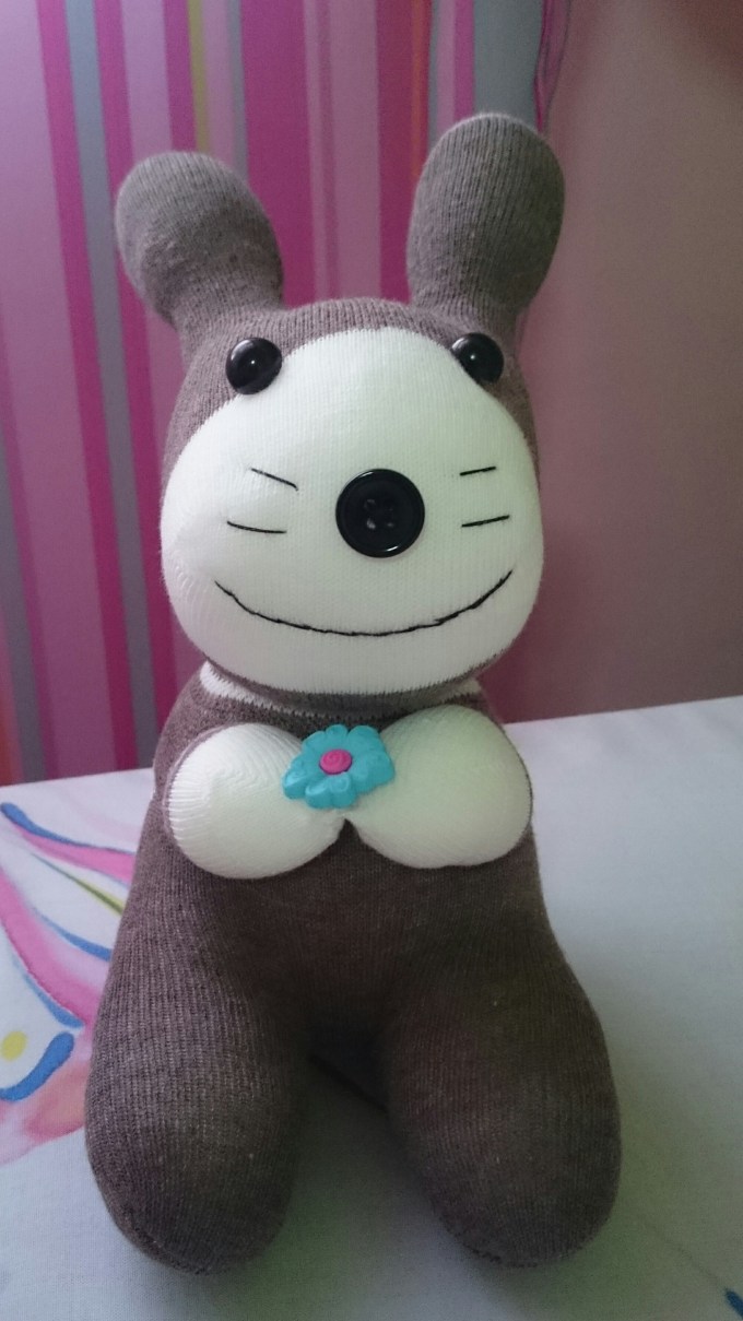 It took me longer than usual today. I normally take about an hour to complete a sock dolly. At first I thought my creation was going to be a puppy. But it seems as I worked on it’s facial features, it now looks more like a Mouse. A mouse that reminds me of the American Tale cartoon. It looks really adorable.