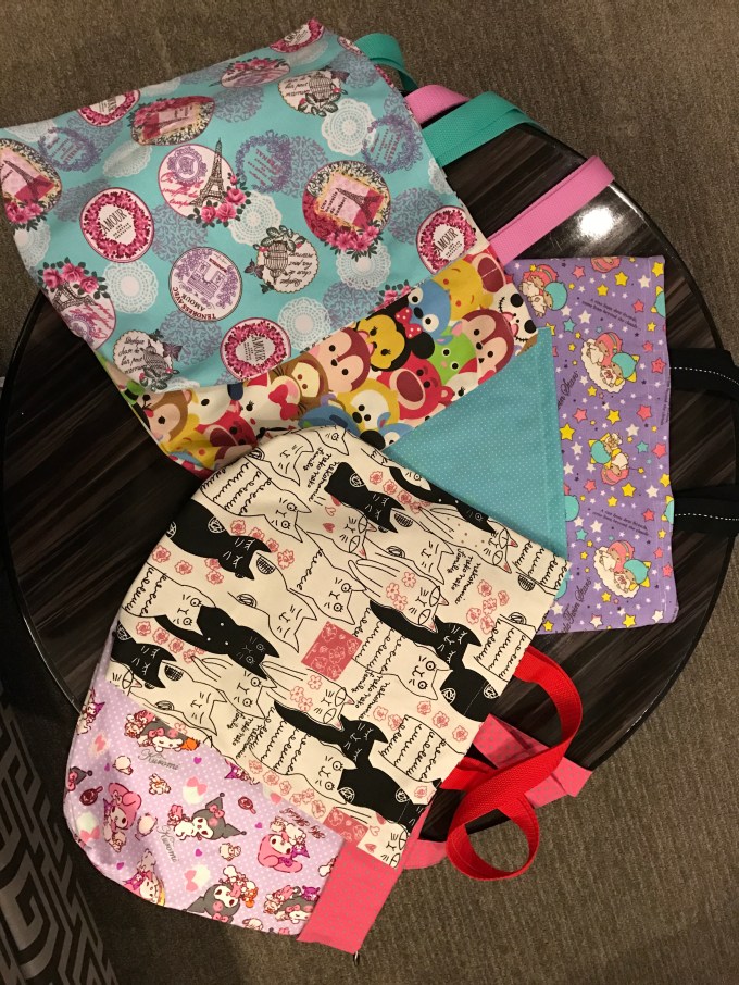 In Sham Shui Po, along the corner of Nam Cheong Street was a simple tailor shop. As small as the size of my bomb shelter at home, owned by a middle aged couple, my little A was fascinated by the cartoon fabric patterned tote bags hanging on the shop’s display. We could choose the fabric patterns available and the lady boss would sew it into the various tote bag designs that we wanted.