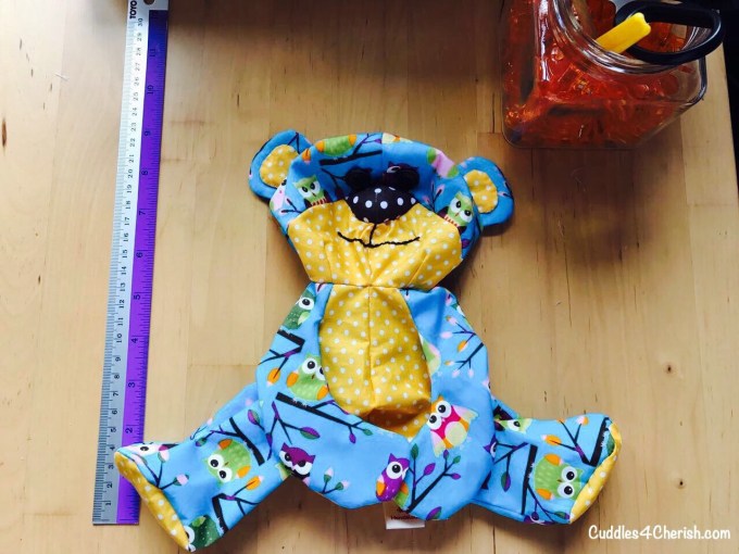 Not bad looking for a Prototype Teddy! Although I would need to perfect my skills on embroidering his facial features on his muzzle to avoid giving him a cleft look. I still feel a sense of achievement despite his slight facial imperfection. But imperfections can still be cuddly cute at times too. I will just have to be mindful for my next teddy in production.