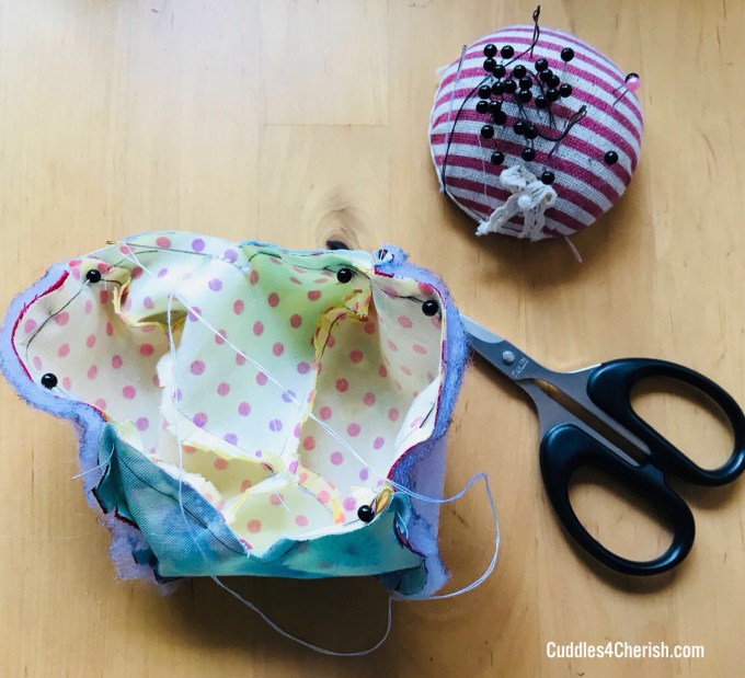 I hand sew the cloth pattern cuts together using the simple backstitch technique.